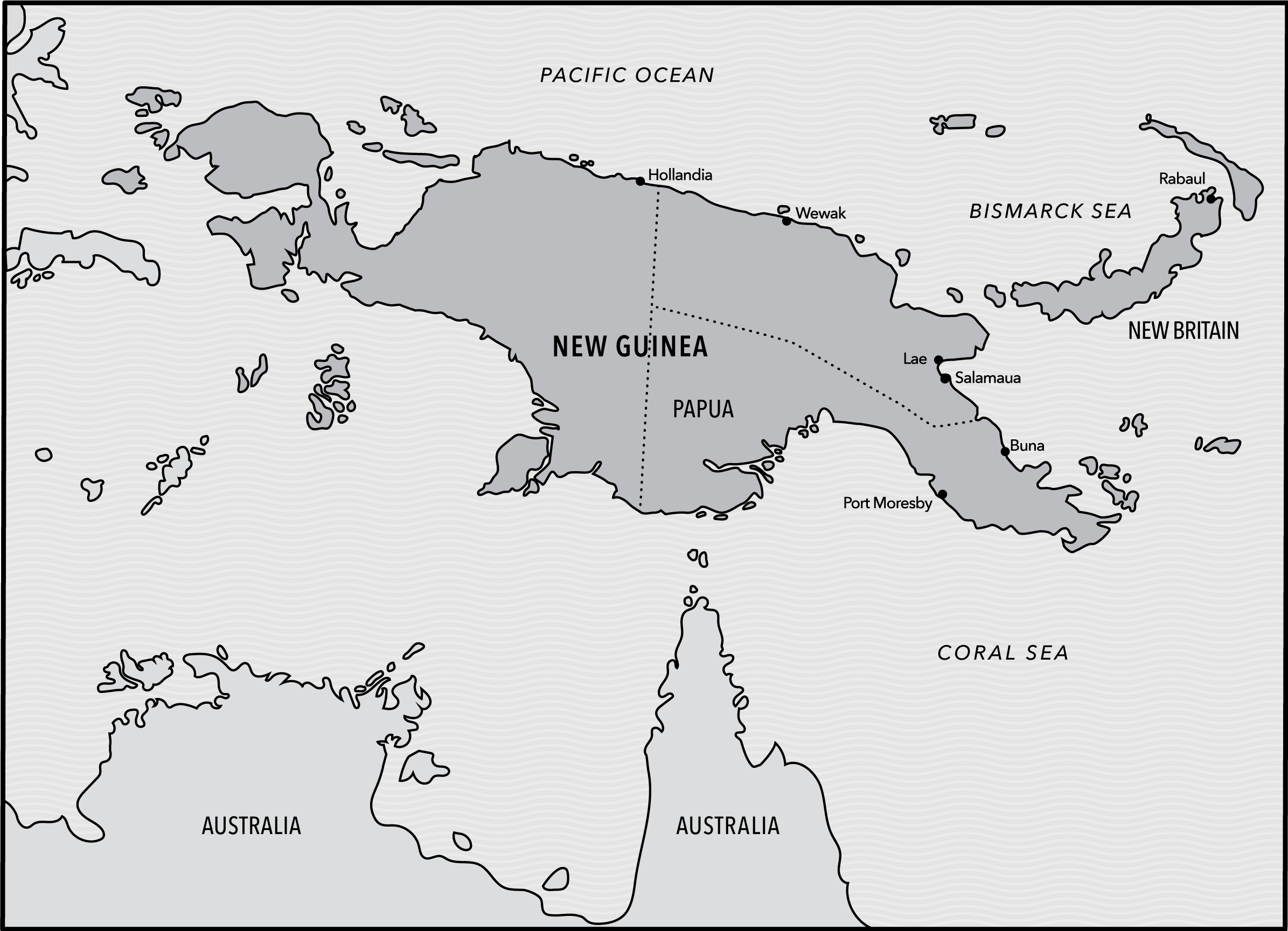 The island comprised three distinct territories. Western New Guinea was part of the Dutch East Indies, while northeastern New Guinea, a former German colony, was a self-governing Australian mandate, awarded to Australia at the close of the First World War. Southeastern New Guinea, annexed by Australia in the late 19th century, was known as Papua, and Port Moresby was its capital. Across a narrow strait was the island of New Britain, with the city of Rabaul perched on its eastern tip. Occupied early in the war by the Japanese, Rabaul had an immense, natural harbor and multiple airfields. With a garrison of 100,000 soldiers, it had become Japan’s preeminent air and naval base in the Pacific and anchored a formidable defensive belt in the south. Sandwiched between New Guinea and the Japanese-held Solomon Islands, Rabaul was also ringed by a network of neighboring island bases.